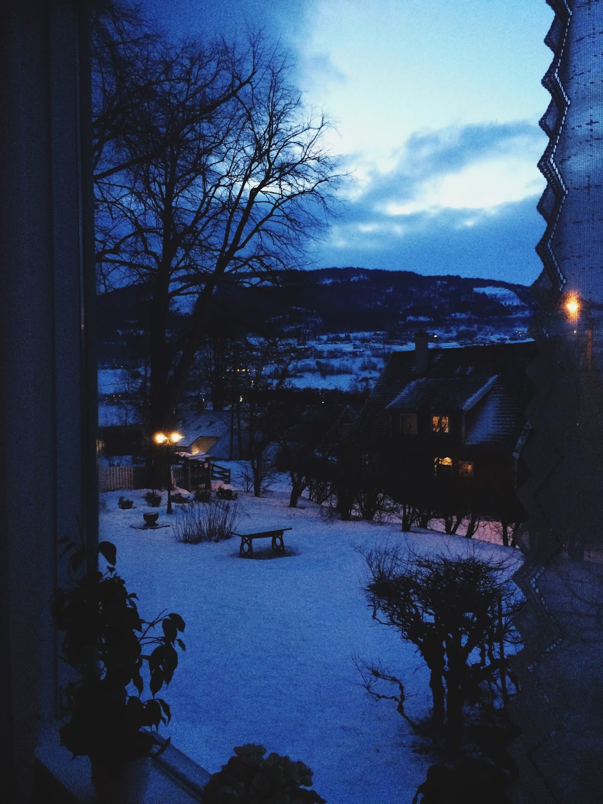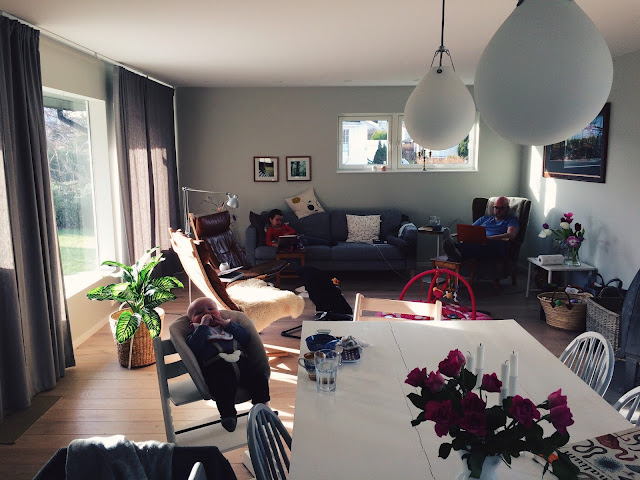 Wednesday afternoon: We were supposed to be on our way to Voss and Bergen for a little winter break, instead we are home crossing our fingers that Sara's fever and cough will go away as soon as possible so we can have that winter break anyway. She coughs so hard she vomits, poor thing! Sverre on the other hand is happy and easygoing, bless him!