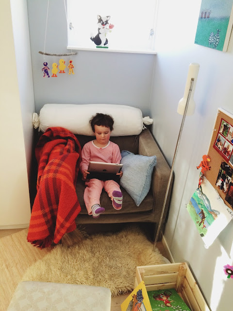Her baby brother chatted too loudly, so she escaped to her room and shut the door. I see the beginning of an era of siblings (unconsciously) tormenting each other...