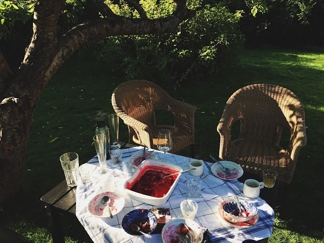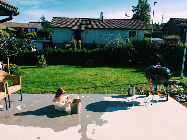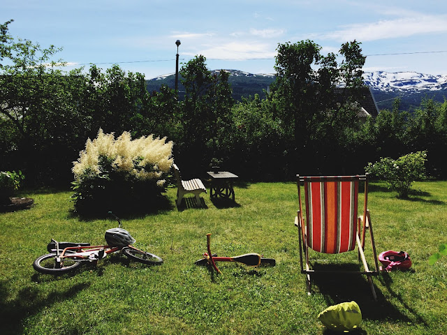 In August I shared a few corners of our home, enjoyed nasturtium galore in the big flower bed, hiked with my parents at Haukeliseter, got closer to finishing Sverre's nursery, had little energy and felt the weight of the last weeks of my pregnancy, got back at work for a few weeks before my maternity leave started, had dinner on the terrace as often as possible, enjoyed red currants and blue gooseberries from our garden, got a huge trampoline - which Sara loves, soaked in the gorgeous weather, but was relieved when the temperature dropped - felt good for my pregnant body and swollen feet.